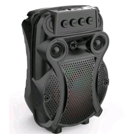 Especificação - Alto-falante: 4 polegadas - Potência de saída: 8W - Resposta de frequência: 45Hz a 18KHz - Sensibilidade: 50dB - Capacidade da bateria: 1200mAh - Tensão: DC 5V - Peso: 0,65kg - Tempo de reprodução: até 4 horas - Tamanho do alto-falante: 21,4 x 11,2 x 14cm Características 1. Super Bass 2. Bateria de lítio recarregável de alta capacidade 3. Suporta várias entradas de áudio: cartão de memória, BT, FM, / AUX 4. Carregue usando cabo micro-USB 5. Efeito estéreo, chamada super clara do microfone 6. Vem com luz LED RGB 7. TWS multifuncional (habilita dois alto-falantes emparelhados via Bluetooth)